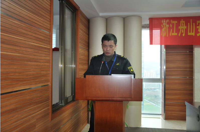 工行中队中队长陈贤达代表全体员工作交流发言,结合中队工作及自身体会,认真总结了以往的工作,并表示会立足岗位,再接再厉,努力工作,为公司的长久发展添砖加瓦。