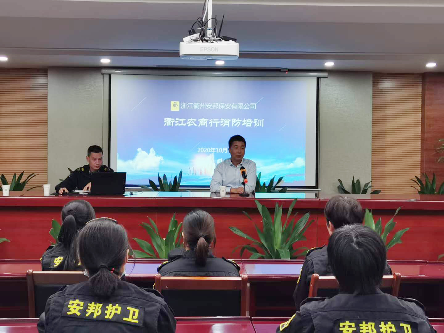 10月9日晚,浙江衢州安邦保安服务有限公司联合衢江农商行在公司集中开展保安员消防、急救培训。衢江农商行安全保卫部总经理徐万洪参加培训会。
