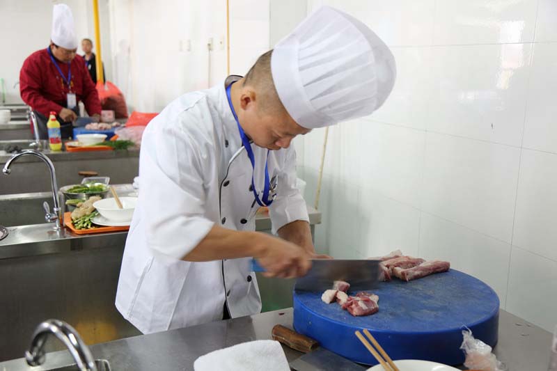 上午9点比赛开始,参赛选手各展技艺,按要求完成了指定菜系和自选菜系的制作,经过三个小时的角逐,一道道色香味美的佳肴呈现在大家面前。评委们综合色、香、味、形、质等方面进行评分,丽水安邦公司胡恩明厨师喜获指定菜系第一名、自选菜系第三名的佳绩。