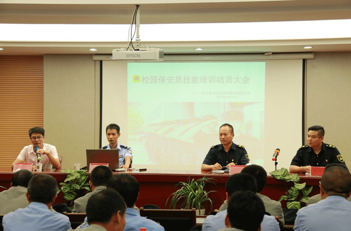 有限公司副总经理马洪庆在动员大会上提出三点要求:一是希望保安员们克服炎热天气,认真对待此次培训。二是希望保安员们互帮互助、通过培训共同提高业务技能。三是希望保安员学以致用,促进服务水平与服务质量的提升。柯城区教育体育局(文化局)安全科负责人王小飞表示此次浙江衢州安邦保安服务有限公司组织的培训是对校园安全的高度重视,是提升校园保安员技能的有效措施。