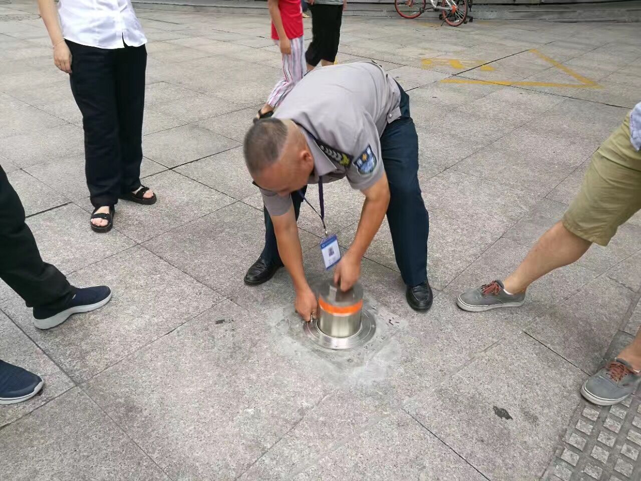 为创建全国文明卫生城市,维护城市正常秩序,改善人居环境,温州市大部分人行道都安装了固定隔离桩,但人行道隔离桩也给实现守押“零距离交接”造成安全隐患,直接影响到款箱、款包等标的物和人民财产的安全。
