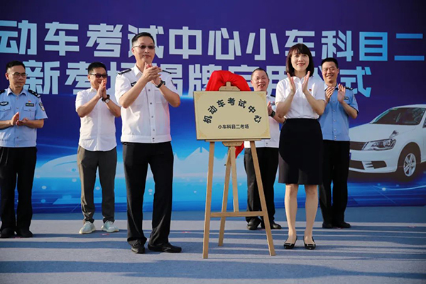 有限公司党委书记、董事长、总经理张淑芬为新考场共同揭牌。衢州市公安局党委委员、交警支队长余水陆宣布机动车考试中心小车科目二新考场正式启用。参加揭牌仪式的各位领导现场参观候考大厅、候考区、科目二考试场地等区域。