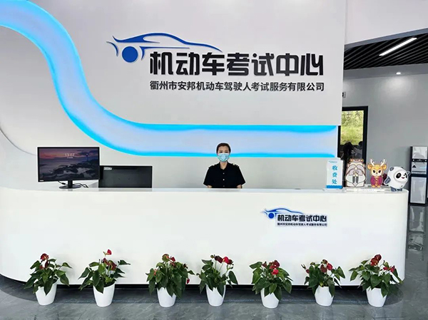 机动车考试中心小车科目二新考场由衢州市安邦机动车驾驶人考试服务有限公司承建并运维,总项目占地约25675.84平方。新考场内设候考大厅、引导(收费)台、休闲茶水吧、查询区、一级候考区、二级候考区、监控室、办公室、机房以及科目二考试场地等,是多功能一体化场所。