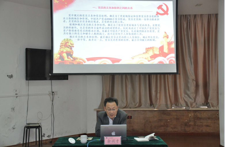 余兴才结合自身经历以《党员的义务和权力》为题,深刻阐述了争做一名合格的共产党员的重大意义,解读了党员的八项权利和八项义务。他要求全体党员要加强学习,立足实际,并以先进典型为榜样,带头履职尽责,保持共产党员的先进性。