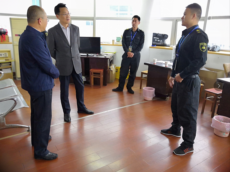 上完党课,余兴才一行在公司党委书记、总经理茹新奋,党委委员、副总经理战国庆的陪同下深入到公司下属中队进行调研,实地查看了中队的办公条件,了解基层党员基本情况及党建活动开展情况。
