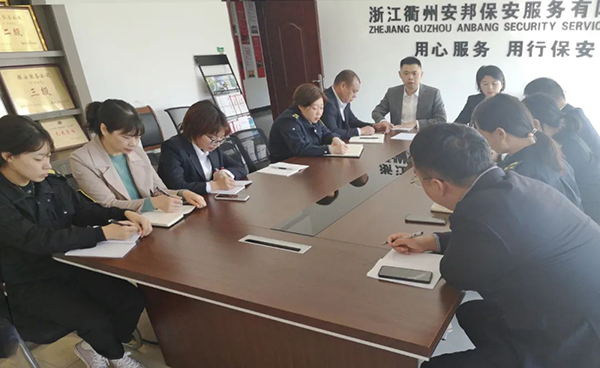 二十大召开在即,浙江衢州安邦保安服务有限公司上下一心,持续开展安全检查、应急演练、志愿服务等各项工作,以严谨的工作作风和昂扬的精神风貌迎接党的二十大胜利召开。