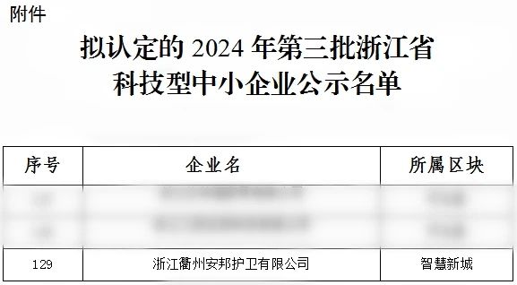 有限公司入选2024年第三批浙江省科技型中小企业名单。