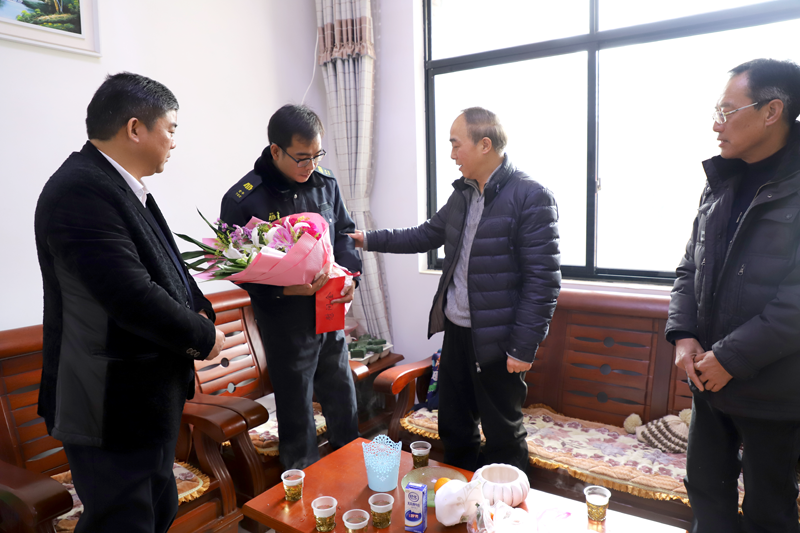 1月16日上午,浙江省保安协会常务副会长沈鑫祥一行到金华安邦公司慰问困难职工胡锦波,送来“保安之家”大家庭的温暖。市保安协会会长陈滋政、安邦公司总经理方顺富等人陪同慰问。