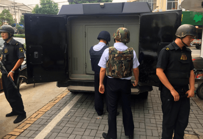 嘉兴公司县市守押大队海宁队与农商银行联合举行防抢劫实战演练