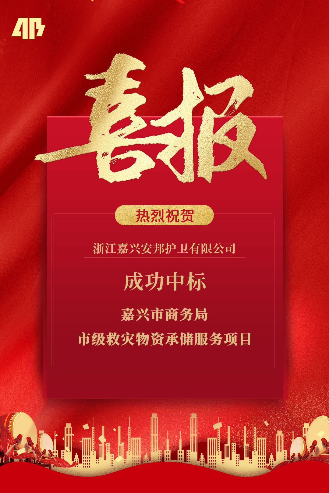 公共安全服务板块取得新突破!公司成功中标嘉兴市商务局市级救灾物资承储服务项目