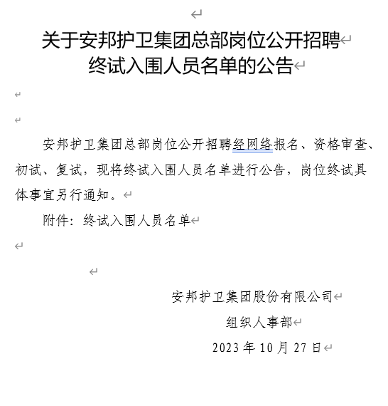 关于成人主播 总部岗位公开招聘终试入围人员名单的公告