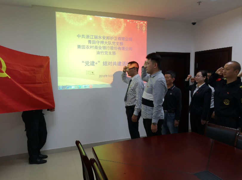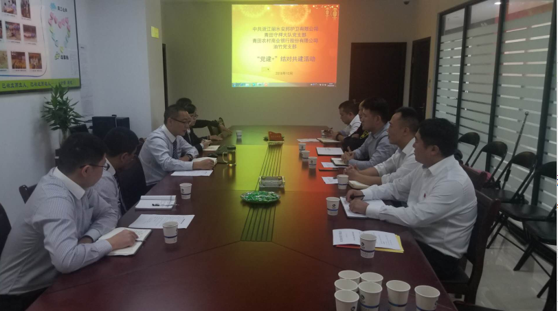 2018年10月16日下午,青田守押大队与青田农商行油竹支行举办党建共建活动,深入讨论加强双方党建共建工作。公司党委委员、工会主席郑洋出席并发表讲话,党群工作部负责人、青田大队党支部书记、大队班子参加活动。