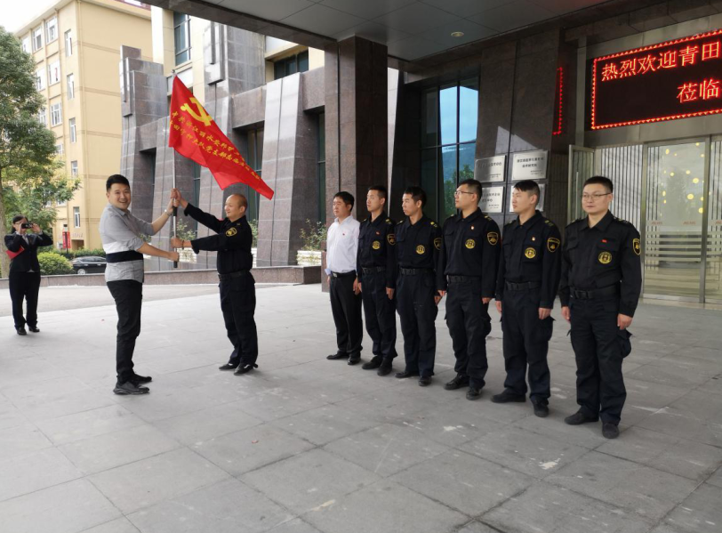 签约仪式结束后,青田大队党支部举行志愿者服务队成立仪式,公司党委委员、工会主席郑洋同志为支部授旗。