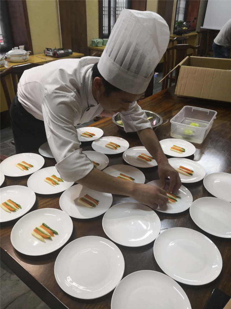 此次交流活动中,参与的每名厨师都将自己最拿手的菜品充分呈现出来,将地方特色融入其中,将菜品的色香味形展现得淋漓尽致。我公司厨师代表魏鹏在此次交流会中展示了绿谷乳鸽、秘制牛排、鲜菌田螺鸡三道菜品,获得了在场领导的一致好评。