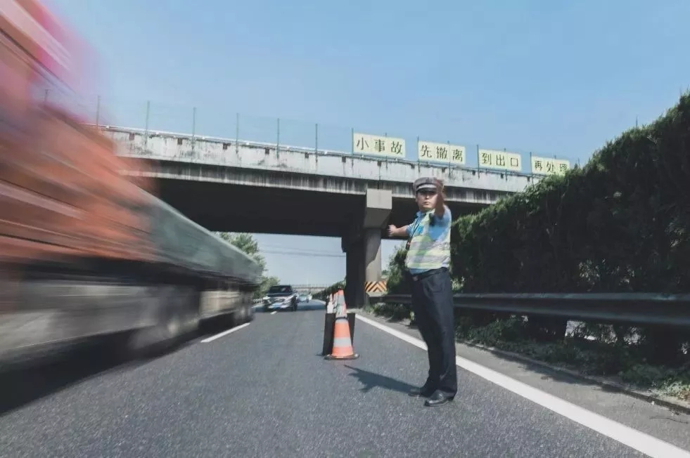 10月5日下午衢州高速公路上,轿车追尾冒烟,衢州安邦交通协管员积极配合,参与交警徒手推“火车”,被各大媒体争相转载。