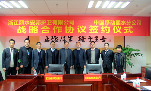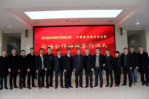 丽水安邦公司党委委员、纪委书记朱永健,党委委员、副总经理陈伟胜,党委委员、工会主席郑洋,中国移动丽水分公司党委委员、副总经理王建生,党委委员、政企客户部经理任力武等相关人员参加签约仪式。