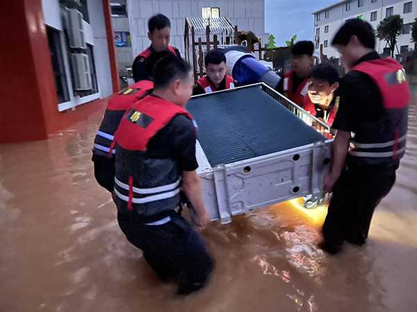 争分夺秒、搬运物资。下午14:30,衢州安邦应急救援支队2队也前往航埠镇支援,配合区应急局做好人员撤离、物资搬运等应急抢险工作。期间,沟溪乡一幼儿园被淹,学校教学设备急需抢救。洪水浑浊,道路坑坑洼洼,水位最深没过腰处,衢州安邦应急救援支队2队接指令后立即前往支援,协助搬运钢琴、饮水机、空调外机、课桌椅等20余件贵重物品。有些物品重达四、五百斤,队员们也二话不说,齐心协力解决群众的燃眉之急。