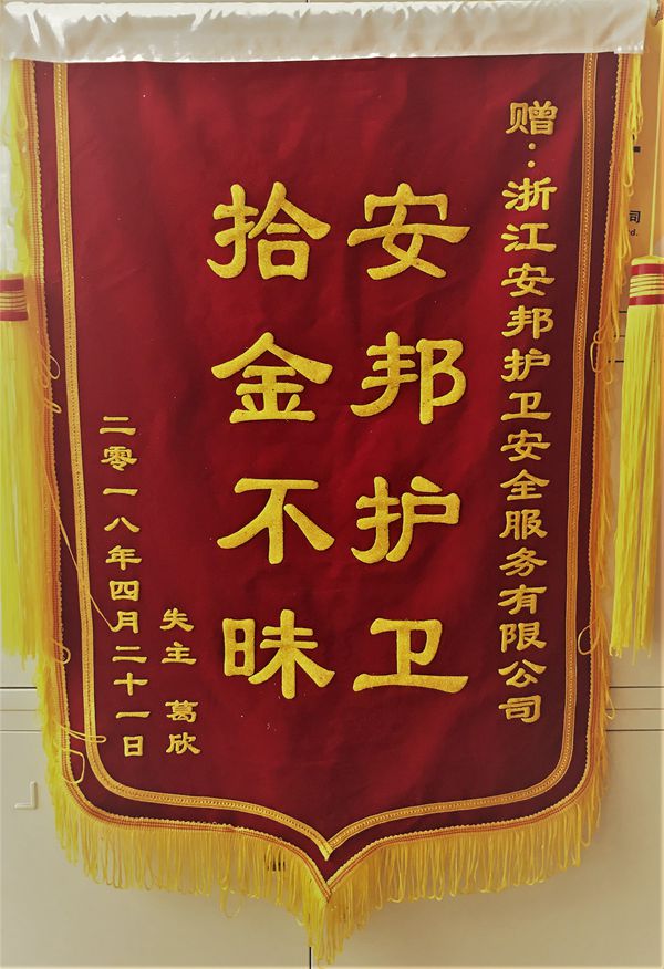 2018杭州安博会安保共查检入场人员10114人次、包物5760件、打火机等违禁物品600余个,安保工作井然有序,获得市公安局、活动主办方的高度肯定。日前,活动主办方已向安全服务公司发出感谢信,并赠送锦旗;此外,几名失主也纷纷赠送锦旗致谢。