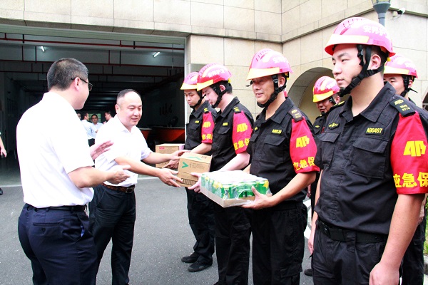 随后,赵孟进、邵志强、姚星和诸葛斌等领导现场看望慰问了湖州安邦应急救援队员。