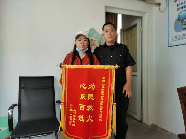 “真是太感谢蒋师傅,没有他的见义勇为,后果不堪设想。”519日,一位在象山工作的贵州杨女士将一面“为民救火,心系百姓”的锦旗送到宁波公司象山分公司国民分队石浦驻点办公室,向分公司员工蒋建武同志不顾危险及时施救表示感谢。