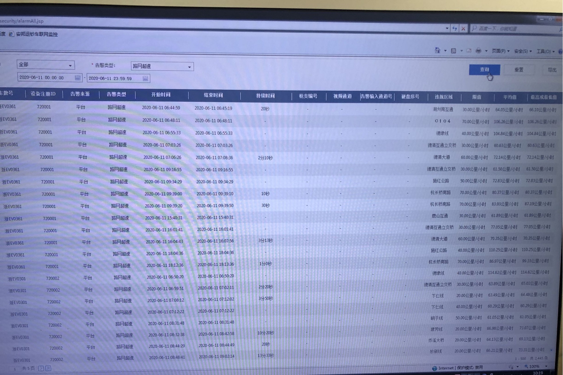 湖州公司利用车载平台开展运钞车交通违法违规排查