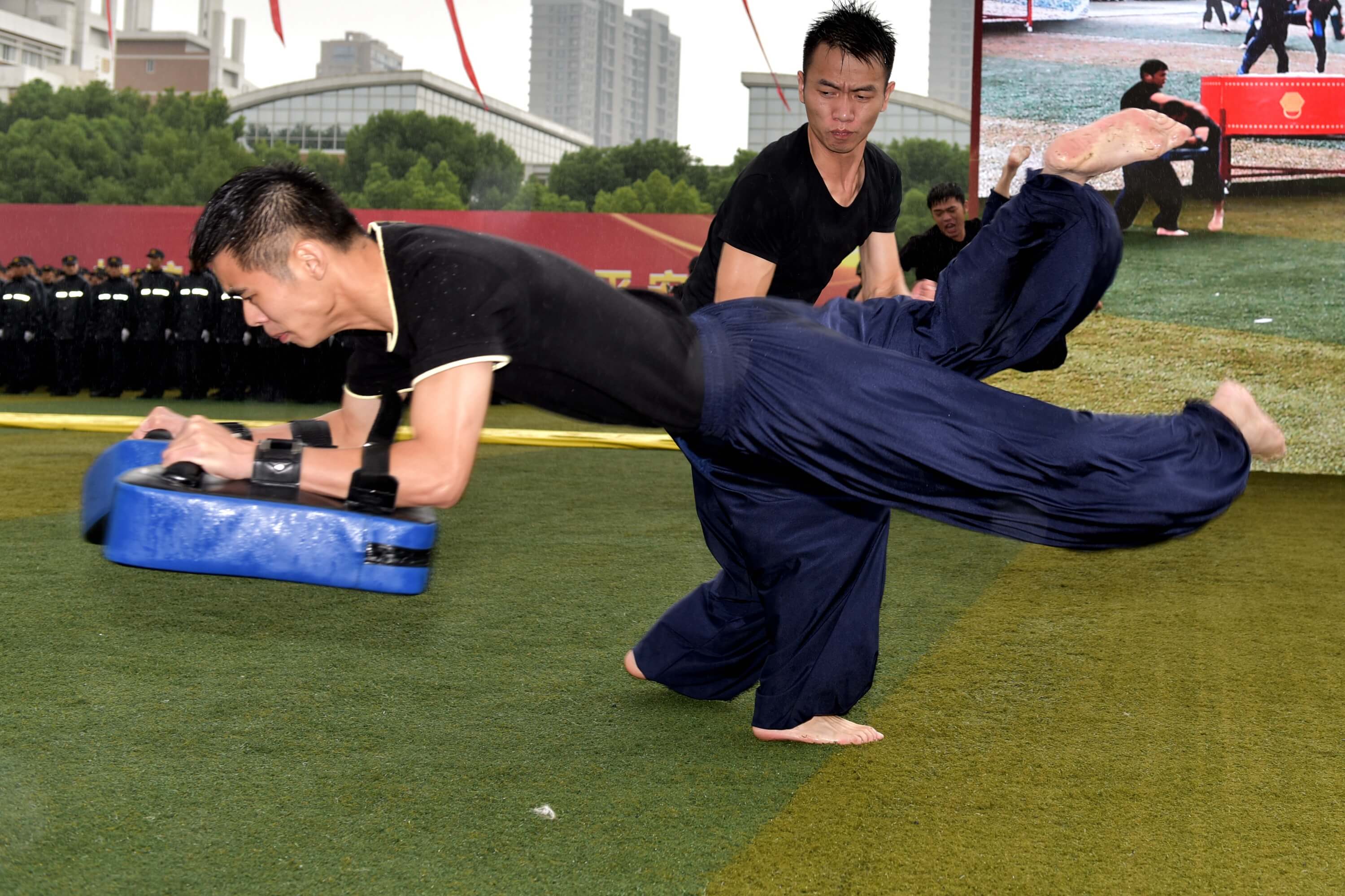“龙狮呈祥”、擒敌拳表演、警棍盾牌术表演、“武魂”特保武术表演、抢劫处置模拟表演、防暴枪战术动作综合演练等节目异彩纷呈,成人主播 员工用他们过硬的技能、优良的素质、精彩的表演,展示了“大练兵”成果,展现了浙江国企铁军良好形象。