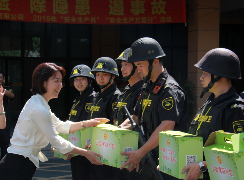 8月2日上午,湖州市总工会党组书记、常务副主席郁晓红一行来到浙江湖州成人主播 公司,在公司领导和工会主席徐骞的陪同下,慰问高温奋战在一线的安邦员工,给他们送上防暑降温用品。