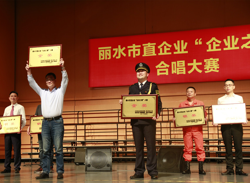 之歌》和《劳动托起中国梦》两支曲目,以饱满的热情、洪亮的声音、整齐的动作,充分展现了丽水安邦良好的精神风貌,赢得了现场观众和评委的热烈掌声。最终,荣获本次比赛的金奖。