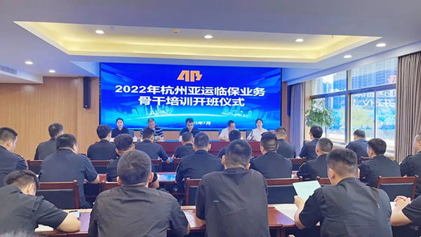 本次培训通过理论讲解、典型案例分析、现场互动、实际操练等方式,对杭州亚运安保勤务知识及突发事件应急处置、大型临保活动工作的相关举措、亚运安保的服务知识要点、队列与仪容仪表等方面开展授课,旨在提升各项安全保卫工作的质量和标准,确保参训人员具备相应综合素质和服务水平,保障亚运会期间主会场的安全和平稳。