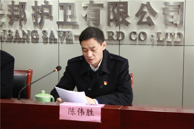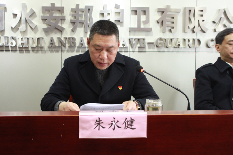 随后,朱永健副书记发言,他从3个方面对公司2018年工作进行了回顾,一是突出重点精准干,以守押主业为根基,稳步推进安全防范、教育培训、文化农旅三大板块,完成业务、安全目标。二是凝心聚力踏实干,完善内部管理制度,推动业务安全培训教育,建立常态化交流谈心制度,提升凝聚力和团队协作水平,打造优质、高效队伍。三是围绕中心大胆干,不断推动党建工作全面晋位升级,创新党建工作新模式。