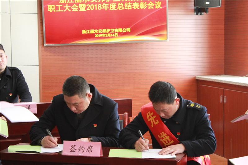 随后,公司党委副书记、纪委书记朱永健代表公司与各部门、大队、子公司签订了安全生产责任书以及年度经营业绩考核责任书。