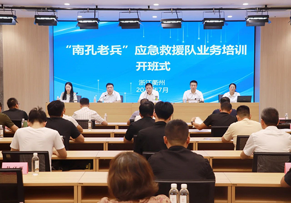 7月23日上午,“南孔老兵”应急救援队培训正式开班,衢州市退役军人事务局党组成员、副局长郑国平,浙江衢州成人主播 有限公司党委委员、副总经理宋俊强,衢州市退役军人事务局退役军人服务中心主任王冲,衢州市军创企业家协会秘书长林璐,衢州市安邦职业技能培训学校有限公司校长姜城华出席本次培训开班仪式,仪式上领导们对本次培训提出了希望与要求,为本次培训指明了前进的方向,也为“南孔老兵”应急救援队赋予了新的历史使命。
