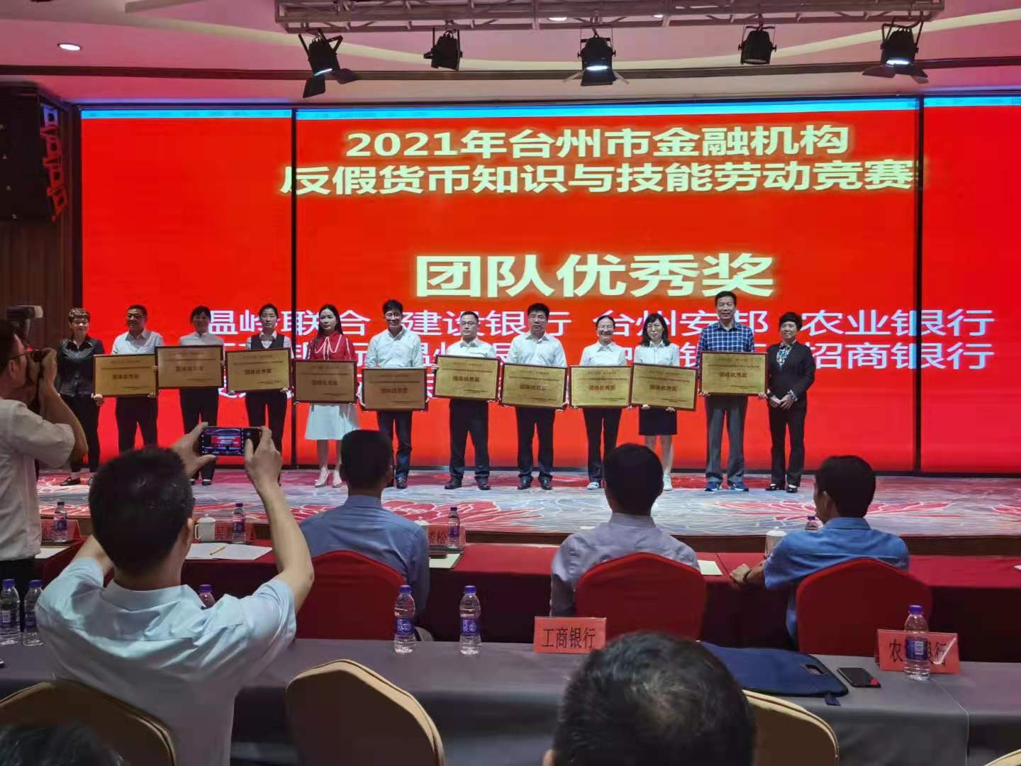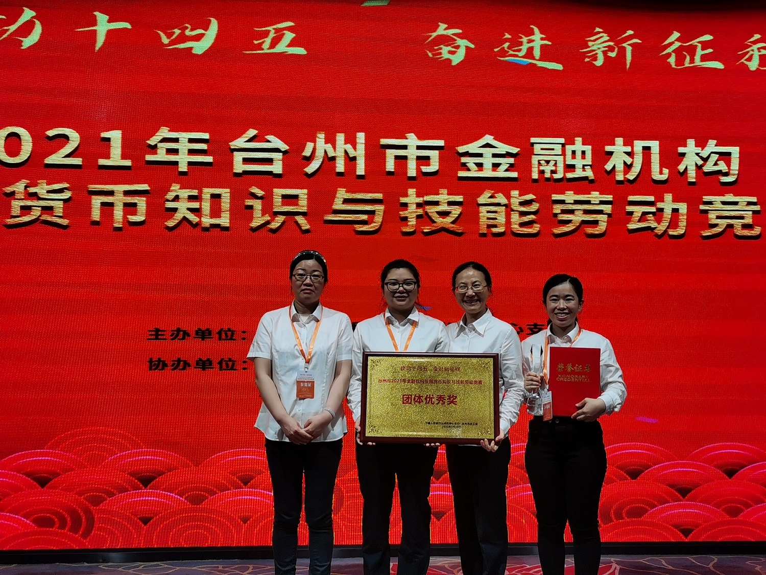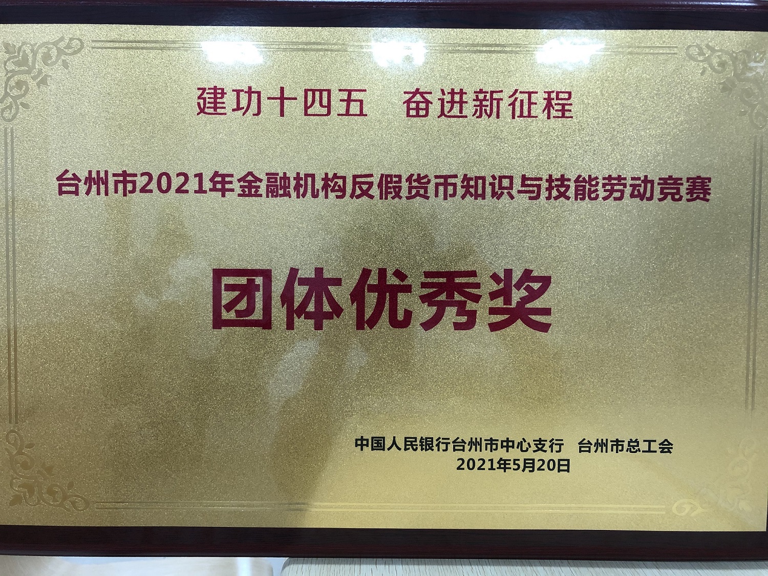 2021年5月20日,台州成人主播 喜获2021年台州市金融机构反假货币知识与技能劳动竞赛团体优秀奖,清分员梁璐璐获个人奖第十名。