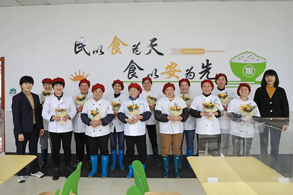 有限公司开展“三八”妇女节慰问活动。公司党委书记、董事长、总经理张淑芬来到食堂等工作岗位,给她们送去美丽的鲜花和真挚的祝福。
