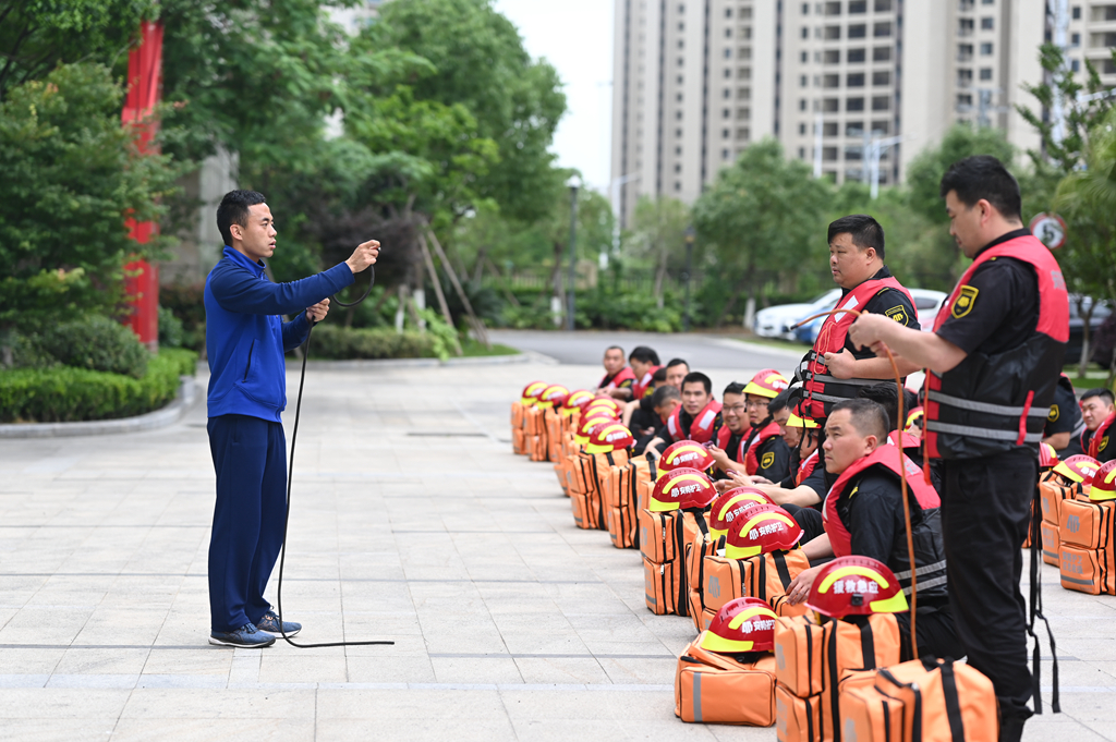 培训内容包括橡皮艇使用讲解和拆解操练,抽水泵和室外照明设备使用讲解和操练,单兵装备的使用讲解,绳索的打结方法、抛绳等讲解与操练,应急物资运输流程操练,抢险救援时的安全注意事项,应急救援指挥官系统的讲解与操练。