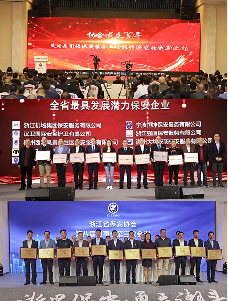 11月6日,浙江省保安协会成立30周年庆典活动在杭州隆重举行,安全公司从全省600余家保安公司中脱颖而出,荣获“全省最具发展潜力保安企业”荣誉称号。在同日召开的浙江省保安协会八届理事会第三次会议上,安全公司被评为“二级人力防范保安服务公司”。