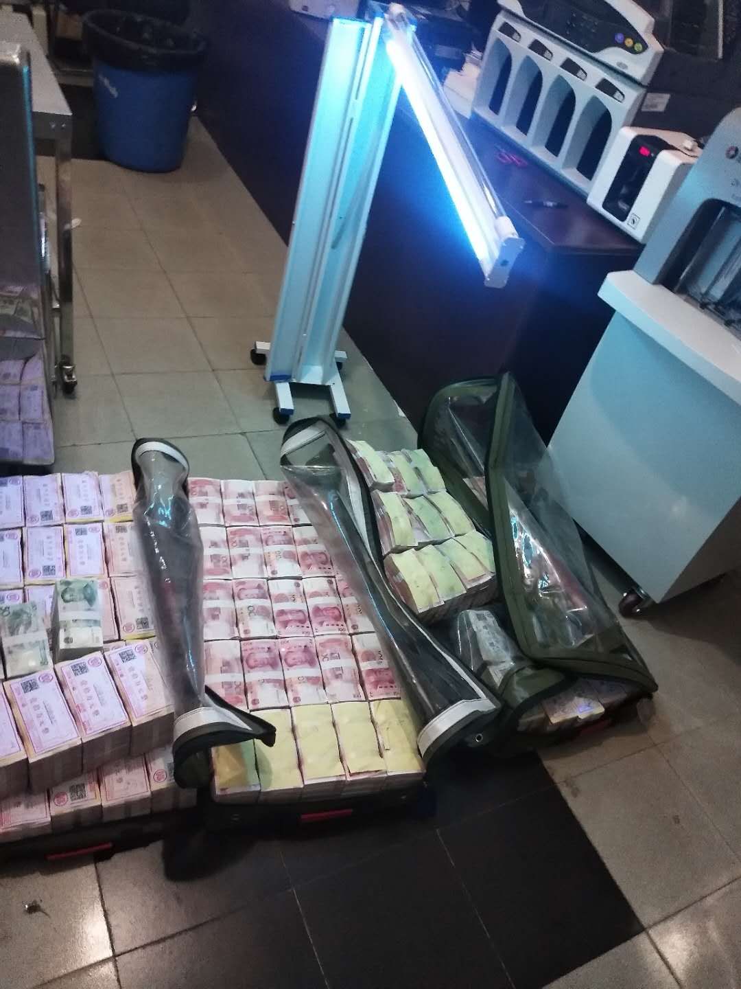 人民币的安全关于群众的安全,为了保证人民币的流通安全,让广大群众使用“安心钱”、“放心钱”,安邦现金清分严格人员管控,每日至少三次体温测量、配备专用手套、所有清分设备消毒,努力将风险降到最低。同时每日对所有收入现金进行紫外线灯消毒。