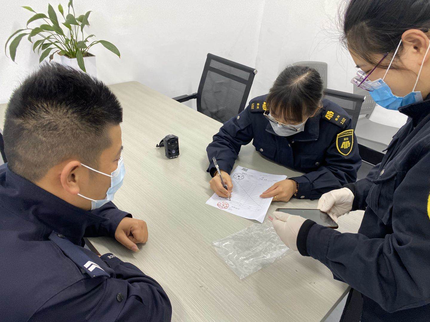 此外,安邦涉案财物管理中心是面对公安、法院的窗口,涉案财物的安全即是人员的安全,管库员从严从细落实防疫工作。上门取件时,做好防护措施;入库时,对人员、涉案财物保管箱、库区再次消毒。