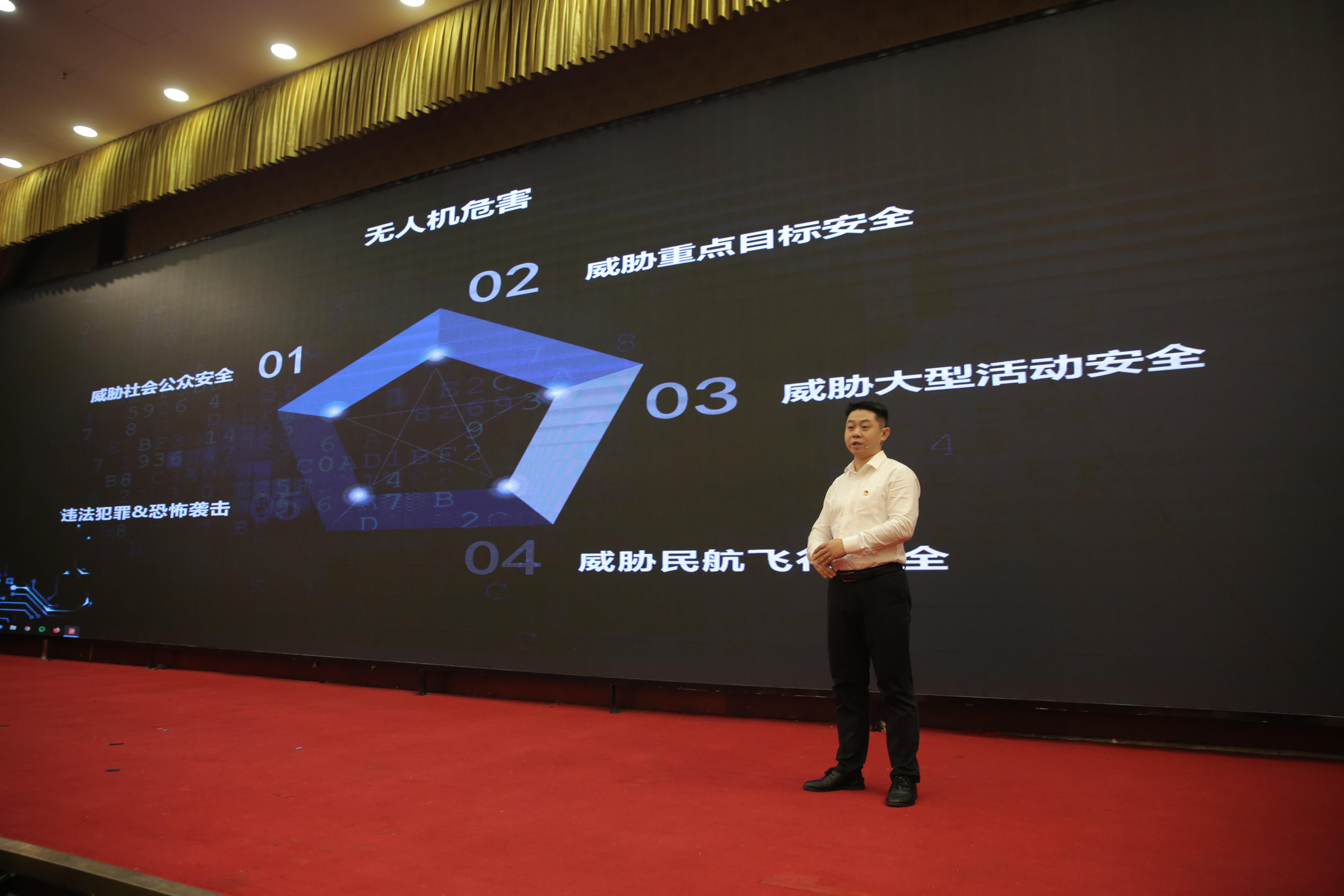 总经理助理胡翔代表公司向与会人员分享了《城市级无人机防御方案》。