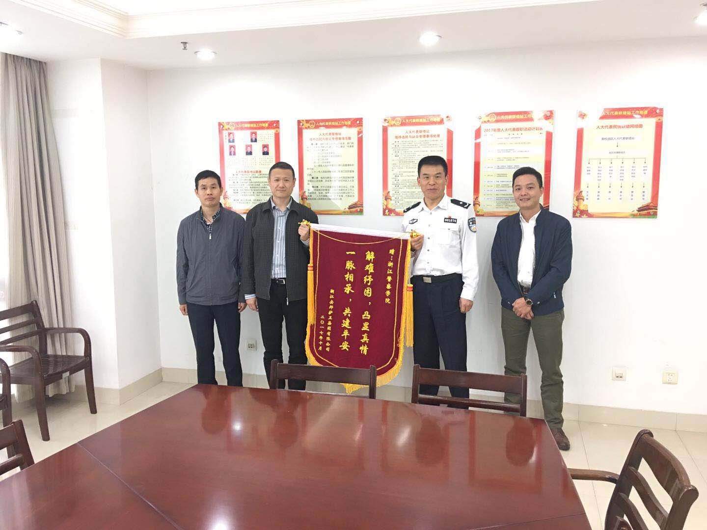 9月28日,成人主播 在浙江警察学院举办了“大练兵大比武”汇报表演暨“平安护航十九大”誓师大会,浙江警察学院给予了全方位的支持和帮助。为表示感谢,10月25日,成人主播 公司党委委员、纪委书记卢卫东受成人主播 公司党委委托向警院赠送了“解难纾困、凸显真情,一脉相承、共建平安”的锦旗。