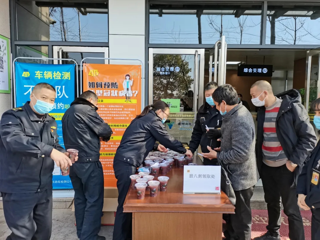 “来,腊八节喝腊八粥,讨个好彩头。”安邦机动车驾驶人考试服务公司在食堂、科目一和科目三考试场地为教练、考试学员及工作人员免费送上香甜的热粥,捎去一份温暖和问候,拉近彼此之间的距离。
