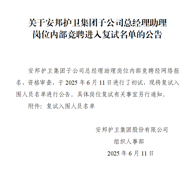 关于成人主播 子公司总经理助理岗位内部竞聘进入复试名单的公告
