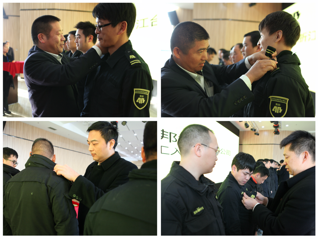 三个大队新员工代表分别进行了入职演讲,新员工代表表示:成为安邦大家庭中的一员感到非常荣幸,并要求自己始终保持严谨认真的工作态度和一丝不苟的工作作风,时刻牢记自己的责任和义务,严格要求自己,为公司的发展做出自己应有的贡献。随后,朱总及大队领导为新员工佩戴安邦标识,所有新员工签订入职承诺书,并集体进行入职宣誓。