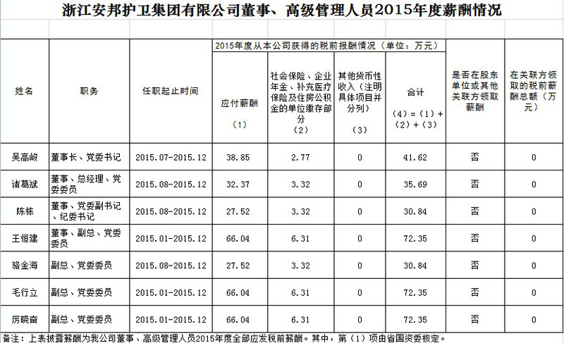 浙江成人主播 有限公司董事、高级管理人员2015年度薪酬情况
