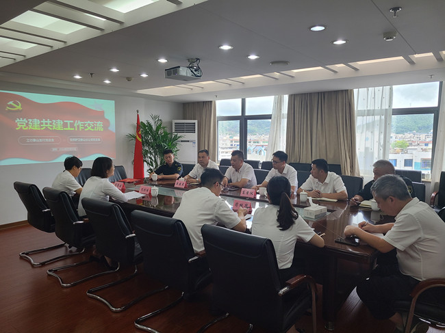 为深入学习贯彻习近平新时代中国特色社会主义思想,喜迎党的二十大胜利召开,9月2日,宁波公司象山分公司党支部与工商银行象山支行党总支开展“同心创党建、携手共安邦”党建共建活动。公司党委副书记、纪委书记李明出席。象山分公司党支部书记、经理吴建光,工商银行象山支行党总支书记、行长骆班东与双方党员代表参加。