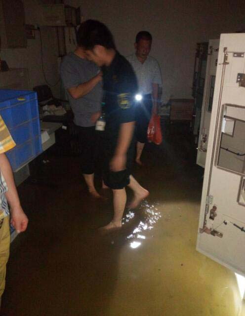 2017年10月10日晚,杭城北部突降暴雨,农行余杭支行运河镇离行式自助网点遭水淹,情况紧急,我公司香积寺路基地启动应急预案,派出由郑瑞杭、叶三星等五名同志执行此任务。