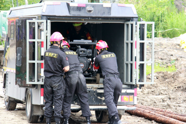 救援队主要从决堤抢险、紧急排涝等方面,模拟了防汛应急处置,圆满完成了演练任务。