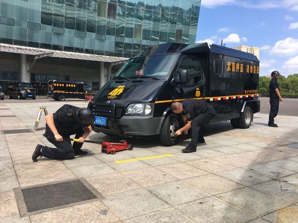 比武内容分为:执行晚接款任务出发前,车组整队集合,车长检查防护装备及交代沿途注意事项;运钞车途中发生车辆故障,车组人员协同作战,排除故障更换轮胎;晚接款运钞车到达网点后的押运规范操作流程三个方面内容。只见每个车组队伍整齐、气势威严、检查严谨、处置快捷、操作规范,一系列操作充分展示了“守押规范、素质过硬”的职业操守。