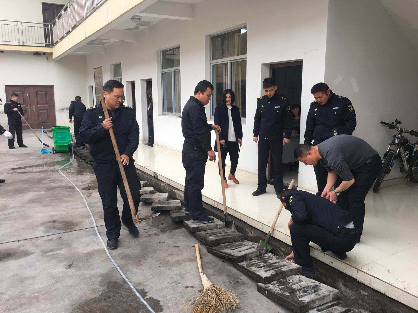 12月13日上午,金华安邦公司浦江中队利用空余时间组织全体队员对中队驻点及周围进行安全隐患、环境卫生大清理。