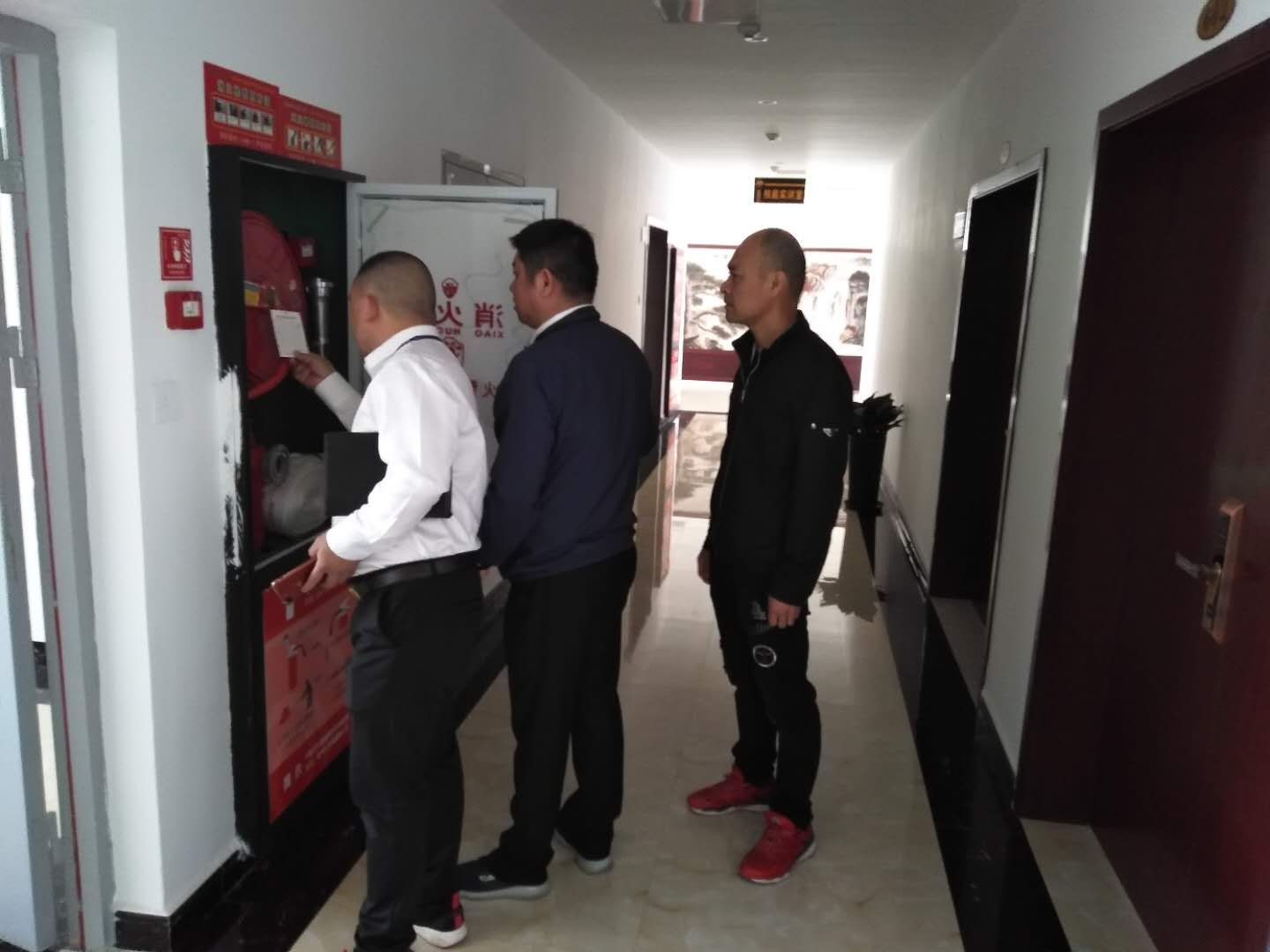 四、消防安全检查。对金融守押中心内灭火器是否过期,消防设备运行的自动检测报警系统、火灾自动报警系统、自动喷水灭火系统、消防配电系统和消防供水等消防设备是否完好,楼层消防通道是否畅通等设备设施进行安全排查,并对检查过程中发现的消防安全隐患问题,逐条记录,限时整改。